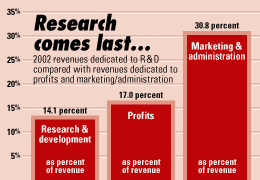 -- The top 10 American and European drug companies, which posted profits (as a percentage of sales) of 17 percent in 2002--even in recession conditions.