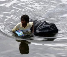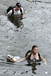 EARLY ON during the catastrophe, Yahoo released two similar photos of residents wading through waist-deep water--but with very different captions.