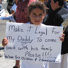 YOUNG KAYLA wasted no time when offered markers and a poster board after she was informed that we were fresh out of signs. The placard she crafted for the march was more poignant and profound than any of ours. It read: "Make it legal for my Daddy to come back with his family please."